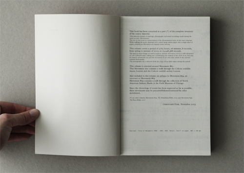 Artist's atlas containing drawings, photographs and sound recordings made during travel periods (Movements) of the artist. The volume covers a period of 3763 hours, 26 minutes, 8 seconds, from Spring to Autumn of 2003. This particular Atlas covers The Cleveland Walks and The Leuven Walks.