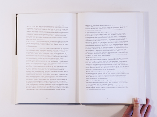 Jan de Vries died at the age of thirty in 1996 in Ghent, Belgium. Having been chiefly active as a sculptor, he focused on photography in the two last years of his life. Resulting from this is a book, gradually conceived as he combined images, taken mostly from his private surroundings and reshaped in the pseudo-narrative entire of the book. The book has, in spite of its references to a snap-shot photo-album, a penetratingly mystified, enigmatic tone It sets out a profound inquiry with regard to the parallelism, or gap, between a chronology of mental processes and the creation of an work of art.